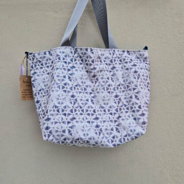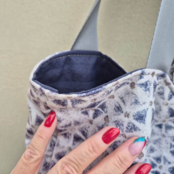 Este citybag modelo Brisa Atlántica combina sencillez y encanto en un diseño ideal para el verano. Confeccionado en tela piel de melocotón de tacto firme pero ligero, su estampado geométrico en tonos lavanda, gris y blanco evoca los mosaicos gastados por el viento y el salitre del mar. Las asas de nailon en gris suave aportan resistencia y un contraste armónico. Espacioso, cómodo y fácil de llevar, es perfecto para paseos por la ciudad, escapadas a la costa o como compañero diario. Su diseño refleja el equilibrio entre funcionalidad, estilo y compromiso con una moda más consciente.