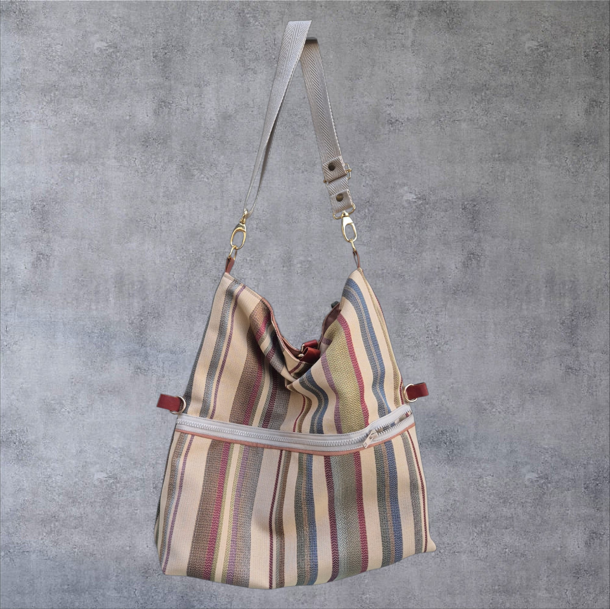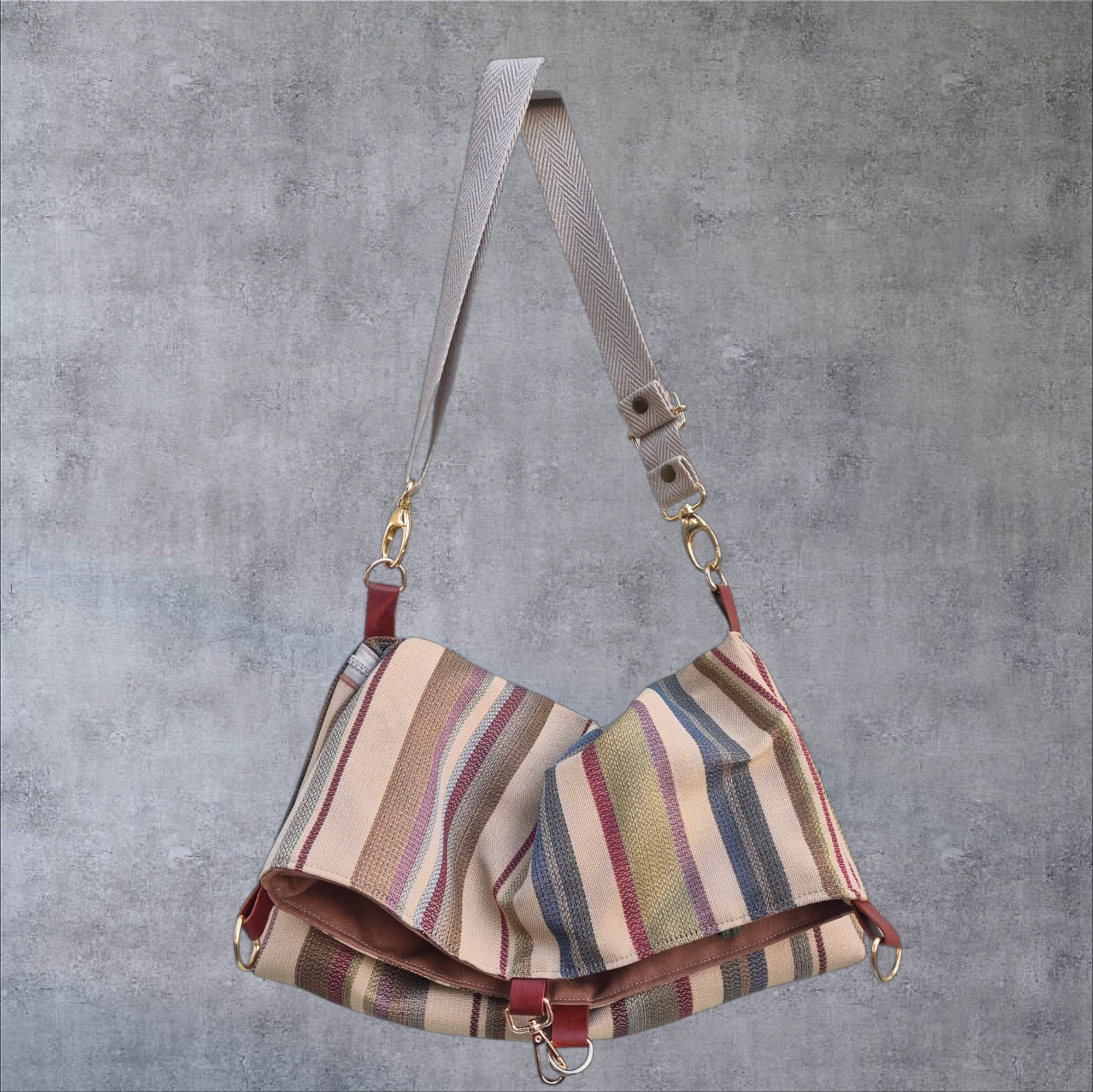Un estampado de rayas verticales finas que combina tonos tierra, azul empolvado y acentos suaves sobre una base clara. La mezcla de líneas lisas y texturas sutiles recuerda a tejidos artesanales, aportando ritmo visual y un aire fresco pero equilibrado. Es un diseño luminoso y con personalidad, pensado para dar un toque distintivo sin perder versatilidad.